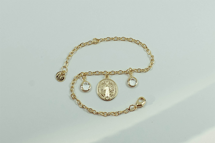PULSEIRA BANHADA EM OURO, ELO CARTIER 4,30x2,10mm, 17cm COMPRIMENTO, EXTENSOR 5cm COMPRIMENTO, 10 MANDAMENTOS