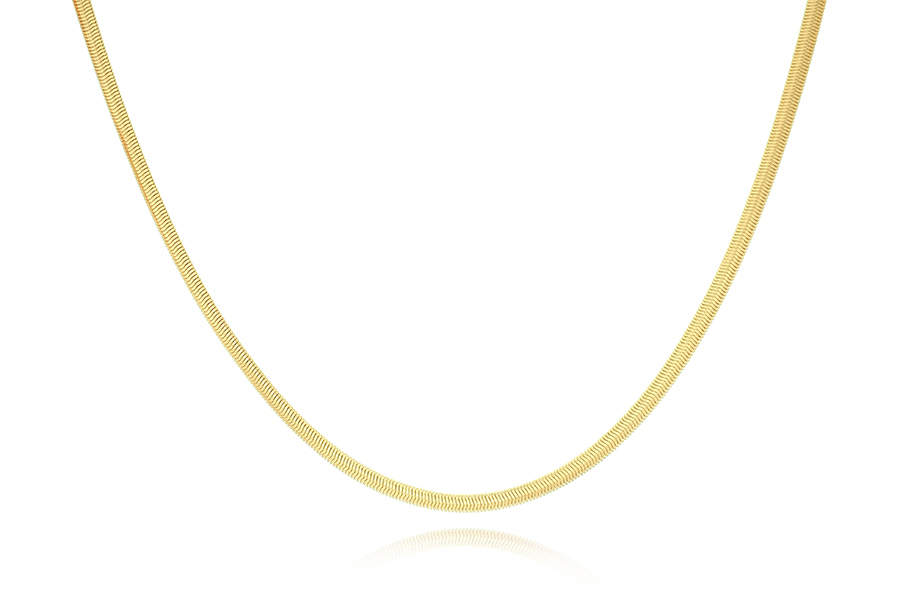 GARGANTILHA BANHADA EM OURO, ELO VENEZIANA 0,80mm, 40cm COMPRIMENTO, EXTENSOR 5cm COMPRIMENTO E TREVO 9mm LARGURA, COLEÇÃO ÍCONES