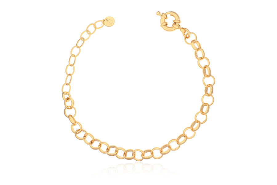 BRACELETE BANHADO EM OURO, OVAL 4mm LARGURA E 6,50cm COMPRIMENTO, COM FECHO, LISO OU ACETINADO
