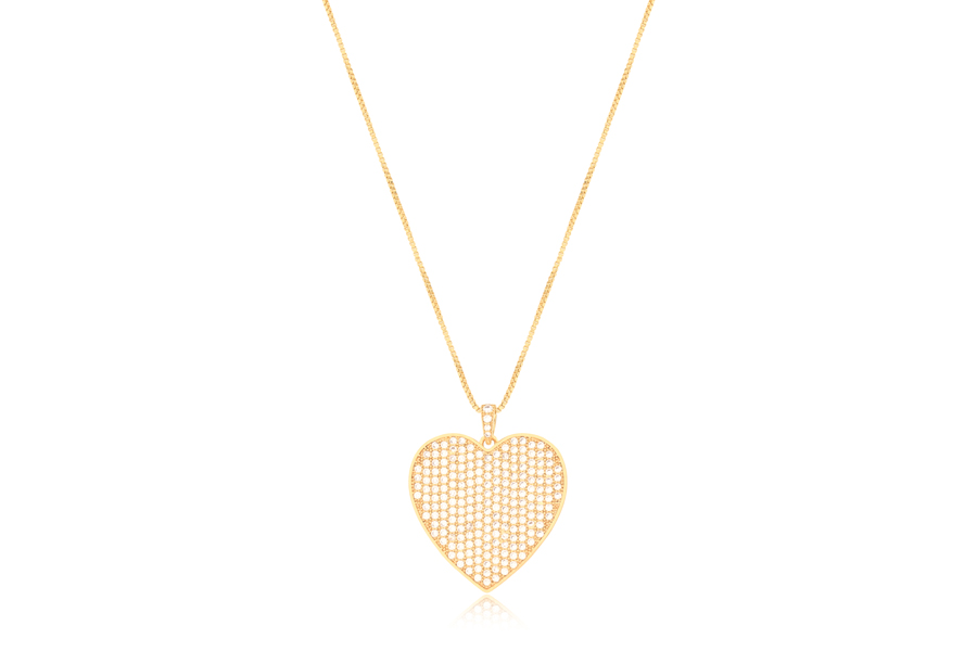 GARGANTILHA BANHADA EM PRATA LEVE, DUPLA, ELO 1,50mm ESPESSURA, PONTO DE LUZ 5mm E CORAÇÃO VAZADO 15,50mm LARGURA COM PATA