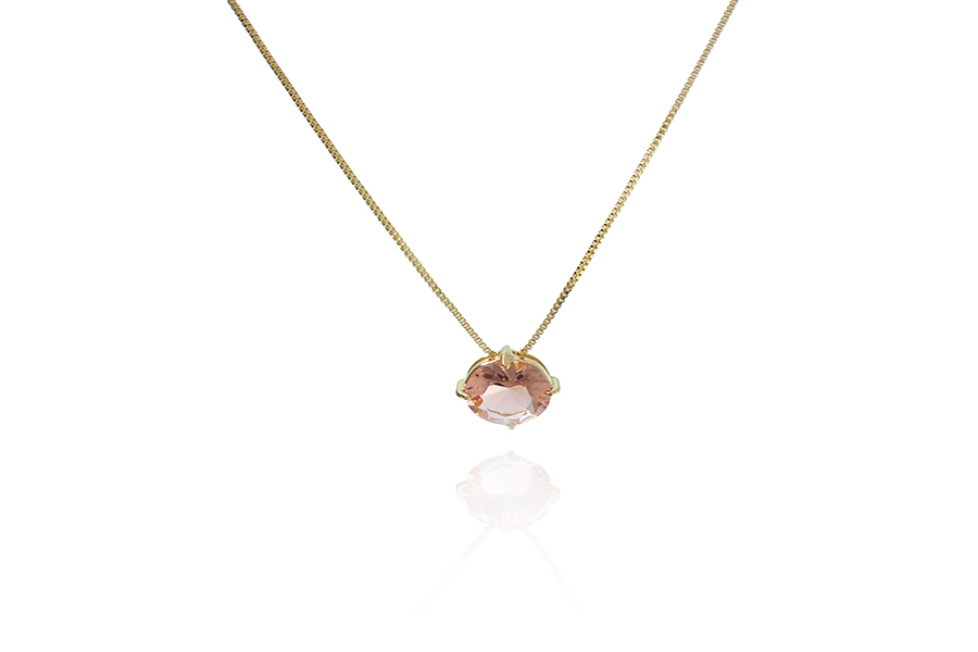 GARGANTILHA BANHADA EM OURO, CRISTAL FUSION RETANGULAR 10x8mm, ELO 1,50mm LARGURA, 40cm COMPRIMENTO E EXTENSOR 10cm COMPRIMENTO