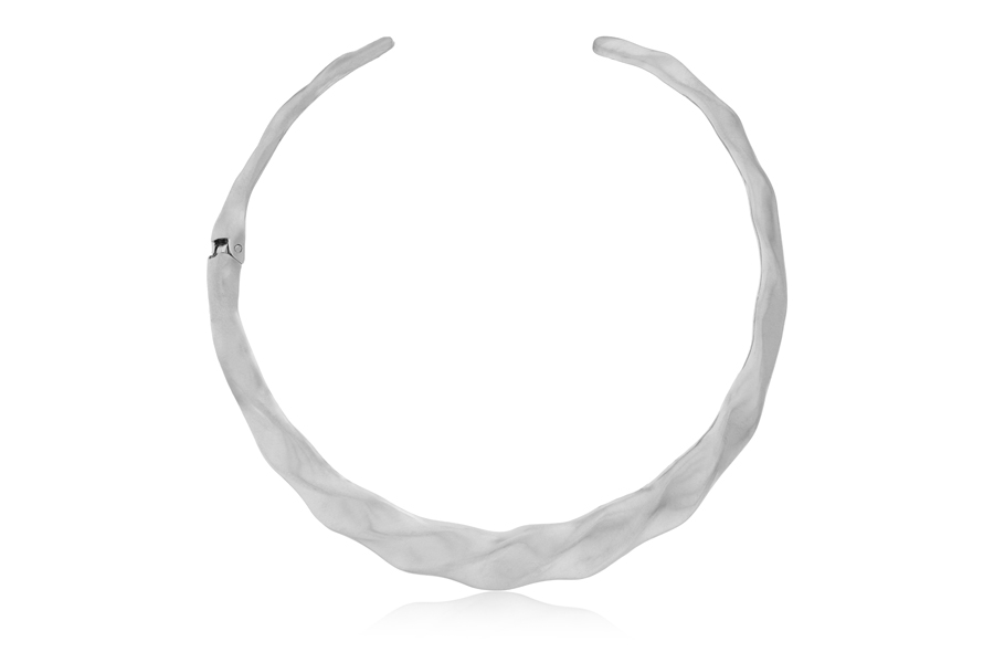 CHOKER BANHADA EM RÓDIO BRANCO, CORRENTE ELO VENEZIANA 0,80mm, 35cm COMPRIMENTO, EXTENSOR 10cm COMPRIMENTO E PESO 1,80g