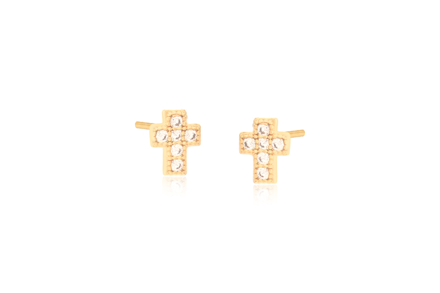 BRINCO BANHADO EM OURO, CRUZ 9mm ALTURA