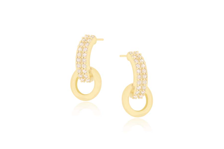 BRINCO BANHADO EM OURO, 5mm DIÂMETRO COM 4 ZIRCÔNIAS, COLEÇÃO ÍCONES