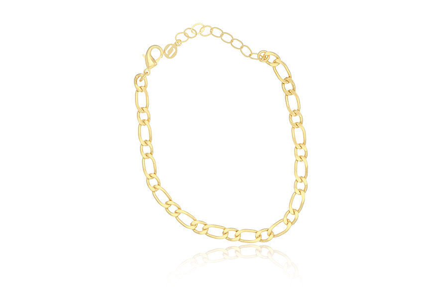 TORNOZELEIRA BANHADA EM OURO, CORRENTE ELO 1x1 6,50mm LARGURA, 22cm COMPRIMENTO E PESO 10g