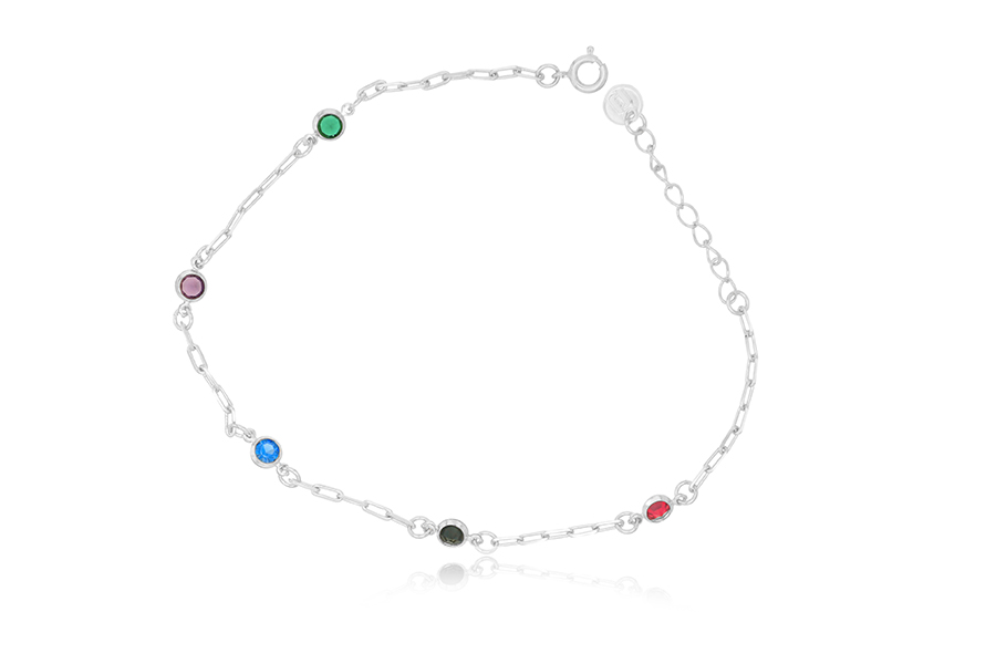 TORNOZELEIRA BANHADA EM RÓDIO BRANCO, ELO PORTUGUÊS 2,50mm ESPESSURA, 22cm COMPRIMENTO, OLHO GREGO 5mm LARGURA E PONTO DE LUZ 3,50mm DIÂMETRO