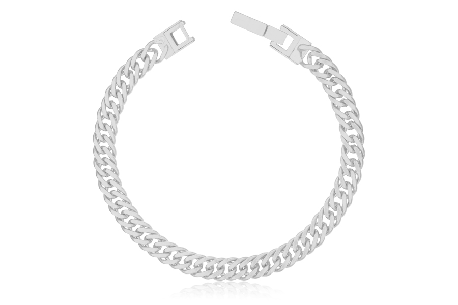 PULSEIRA BANHADA EM RÓDIO BRANCO, CORRENTE ELO 4mm DIÂMETRO, 19cm COMPRIMENTO, EXTENSOR 5cm COMPRIMENTO E PESO 5,20g