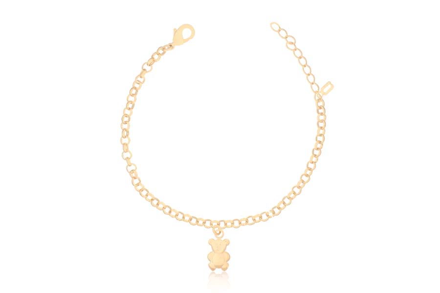 PULSEIRA BANHADA EM OURO, INFANTIL, ELO PORTUGUÊS 2,50mm DIÂMETRO, 13cm COMPRIMENTO, EXTENSOR 3cm COMPRIMENTO E CORAÇÃO 6,50mm LARGURA