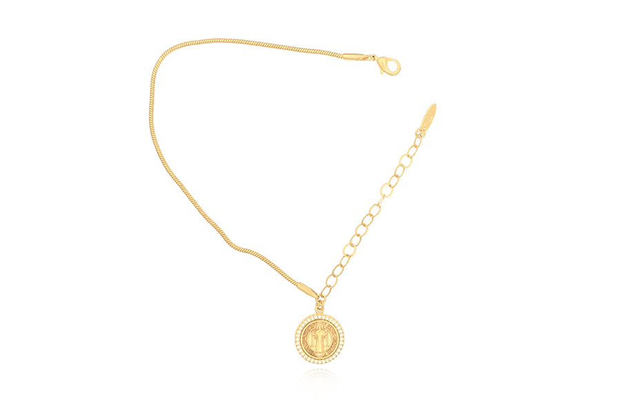 PULSEIRA BANHADA EM OURO, ELO CARTIER 4,30x2,10mm, 17cm COMPRIMENTO, EXTENSOR 5cm COMPRIMENTO, 10 MANDAMENTOS