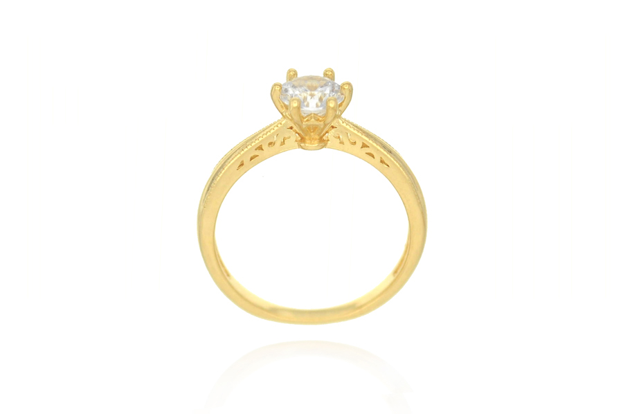 ANEL EM PRATA, SOLITÁRIO REDONDO 3mm, 4 GARRAS, COM INTERIOR EM FILIGRANA