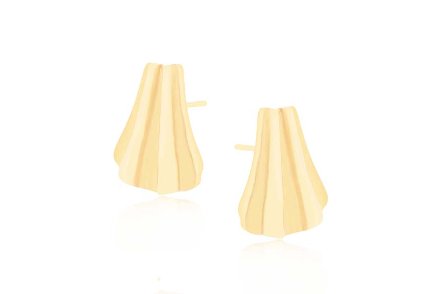 BRINCO BANHADO EM OURO, GOTA IRREGULAR VAZADA 34mm ALTURA, LISO OU ACETINADO