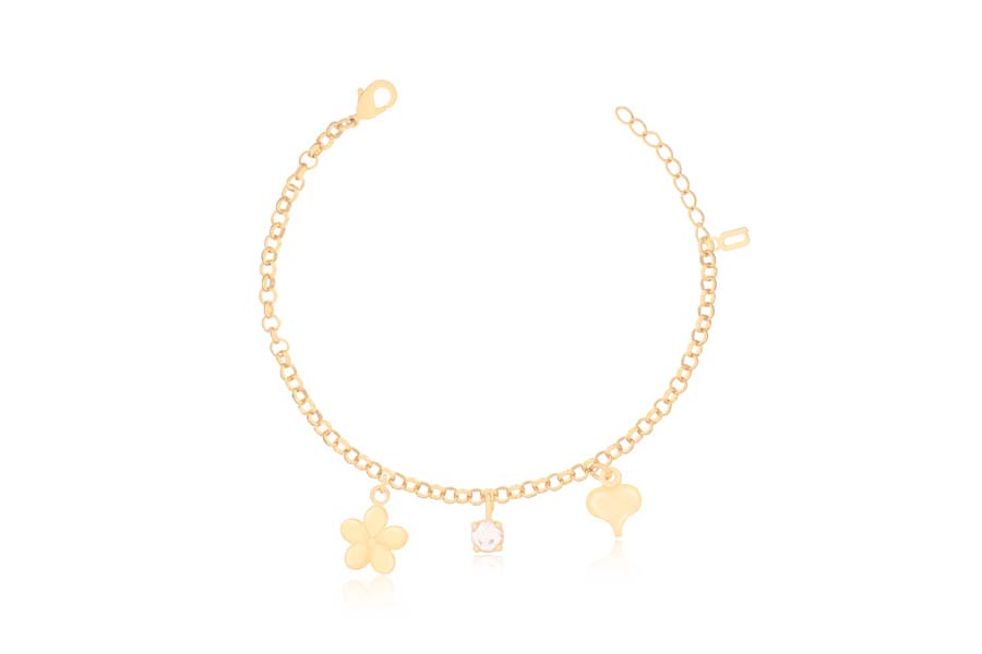 PULSEIRA BANHADO EM OURO INFANTIL ELO PORTUGUÊS 2mm 12cm COMPRIMENTO E CORAÇÃO LOVE 750mm LARGURA