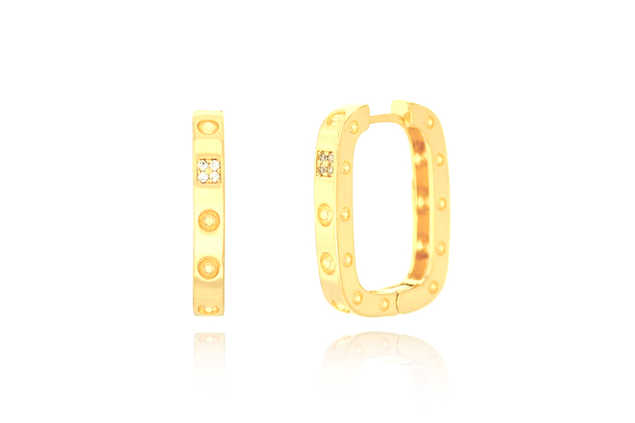 BRINCO BANHADO EM OURO, 5mm DIÂMETRO COM 4 ZIRCÔNIAS, COLEÇÃO ÍCONES
