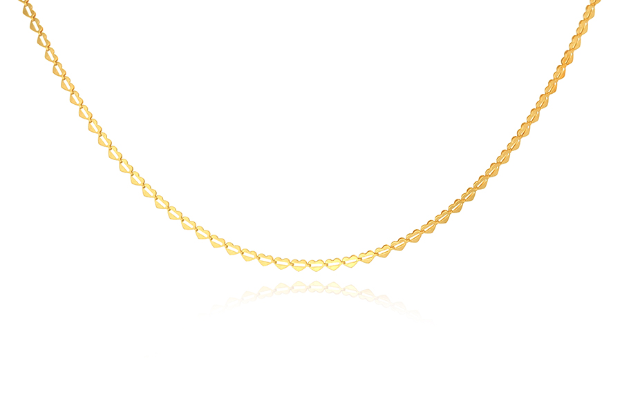 CHOKER BANHADA EM OURO, ELO VENEZIANA 0,80mm, 37cm COMPRIMENTO, EXTENSOR 10cm COMPRIMENTO E 6 CORAÇÕES 6mm ALTURA