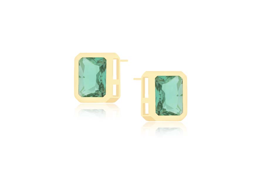 BRINCO BANHADO EM OURO, CRISTAL QUADRADO 21mm, COLEÇÃO INTENSE COLORS