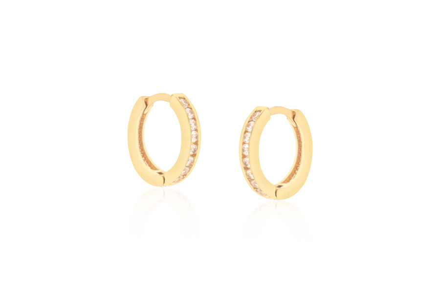 BRINCO BANHADO EM PRATA LEVE, ARGOLINHA 14,50mm DIÂMETRO, COM 22 ZIRCÔNIAS