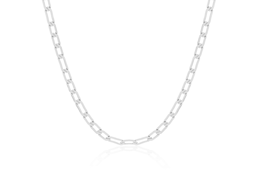CORRENTE BANHADA EM PRATA LEVE, ELO LACRAIA LAMINADA 3mm LARGURA, 43cm COMPRIMENTO E PESO 6,00g