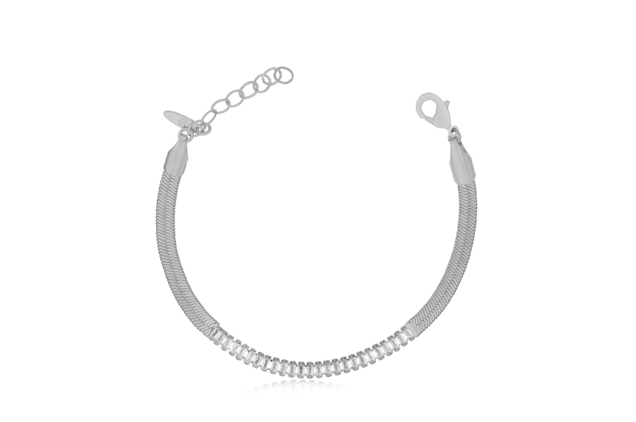 PULSEIRA BANHADA EM RÓDIO BRANCO, RABO DE RATO 1,40mm ESPESSURA, 17cm COMPRIMENTO E PONTO DE LUZ 5mm