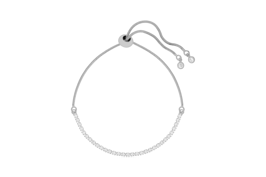 PULSEIRA BANHADO EM RÓDIO BRANCO, CORRENTE CORDA 2,50mm, EXTENSOR 5cm COMPRIMENTO E PESO 3,60g