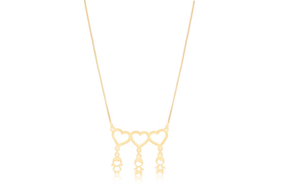 CHOKER BANHADA EM OURO, ELO VENEZIANA 0,80mm, 37cm COMPRIMENTO, EXTENSOR 10cm COMPRIMENTO E 6 CORAÇÕES 6mm ALTURA