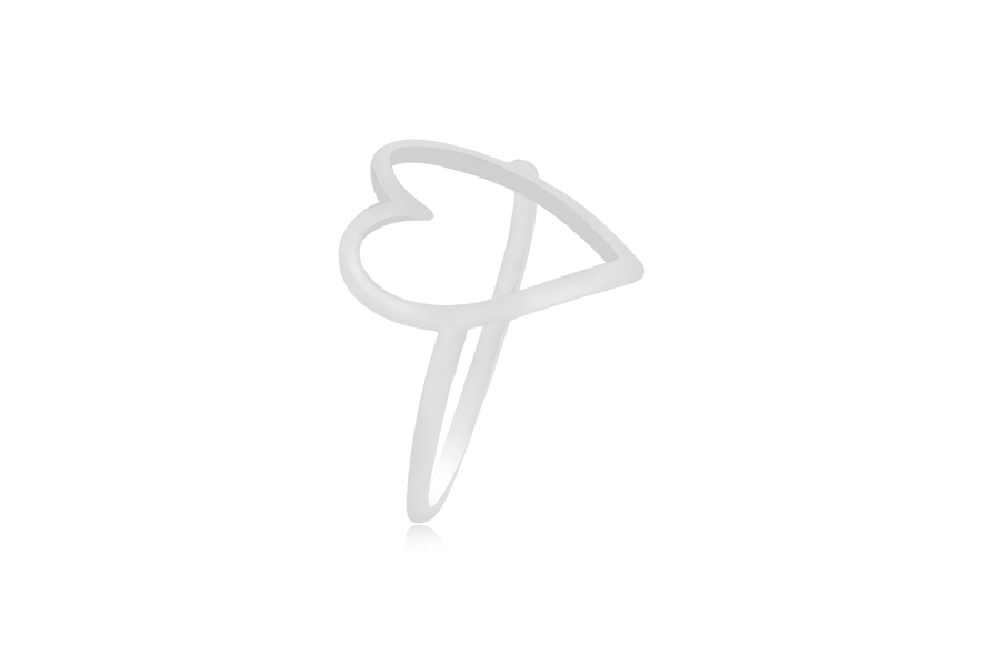 ANEL BANHADO EM PRATA LEVE, FORMATO DE CORAÇÃO