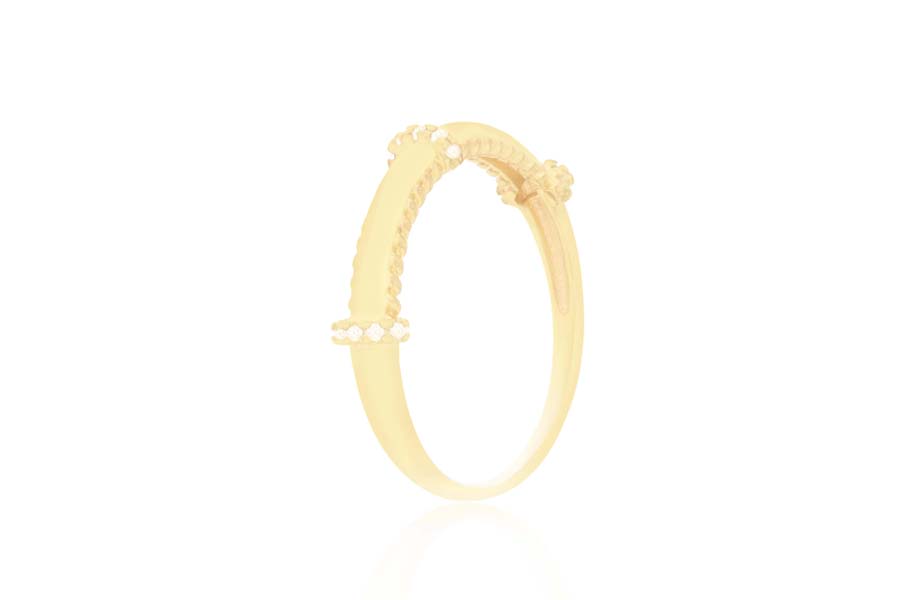 ANEL BANHADO EM OURO, APARADOR UNITÁRIO 3,80mm LARGURA, COM 2 FILEIRAS DE ZIRCÔNIAS