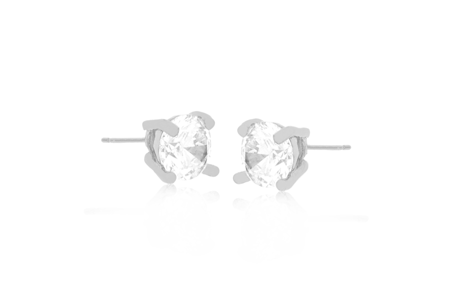 BRINCO BANHADO EM RÓDIO BRANCO, PONTO DE LUZ 5mm, CRAVAÇÃO INGLESA