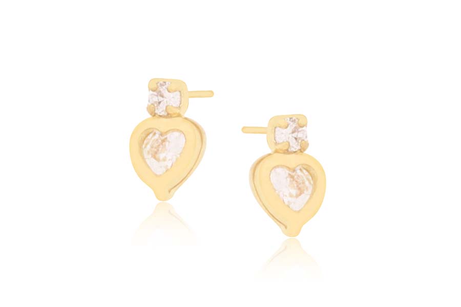 BRINCO BANHADO EM OURO, INFANTIL, PONTO DE LUZ E CORAÇÃO 4,50mm LARGURA, COM TARRAXA BABY