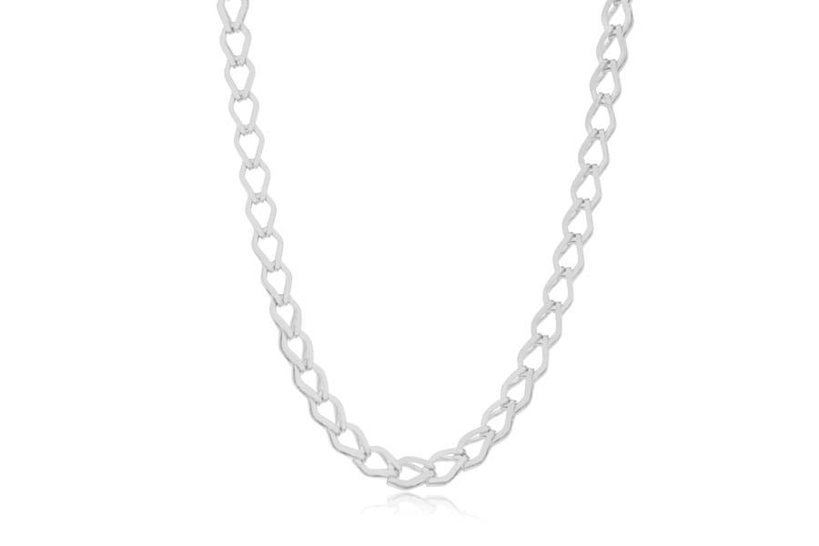 CORRENTE EM PRATA, ELO CADEADO TRABALHADO 2,10mm LARGURA E 0,50mm ESPESSURA, 38+5cm COMPRIMENTO