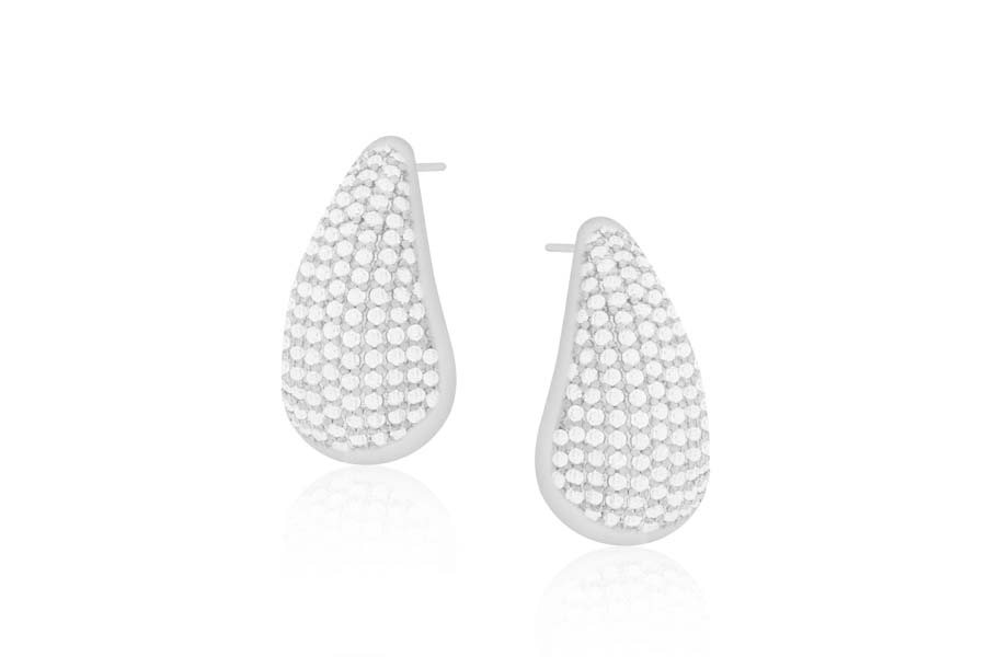 BRINCO BANHADO EM RÓDIO BRANCO, 7mm DIÂMETRO COM 14 ZIRCÔNIAS