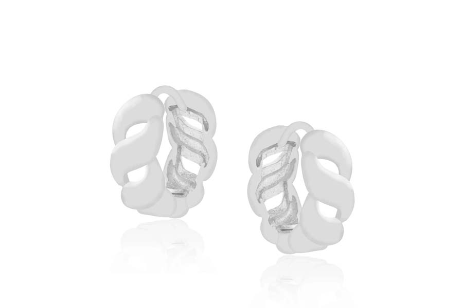 BRINCO BANHADO EM RÓDIO BRANCO, NAVETE 7,50mm COMPRIMENTO