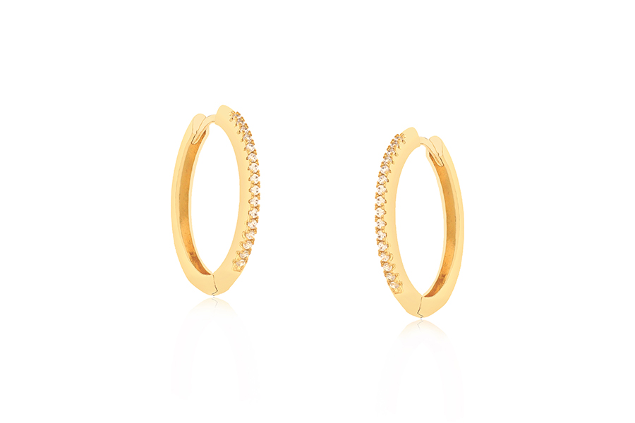 BRINCO BANHADO EM OURO, 5mm DIÂMETRO COM 4 ZIRCÔNIAS, COLEÇÃO ÍCONES