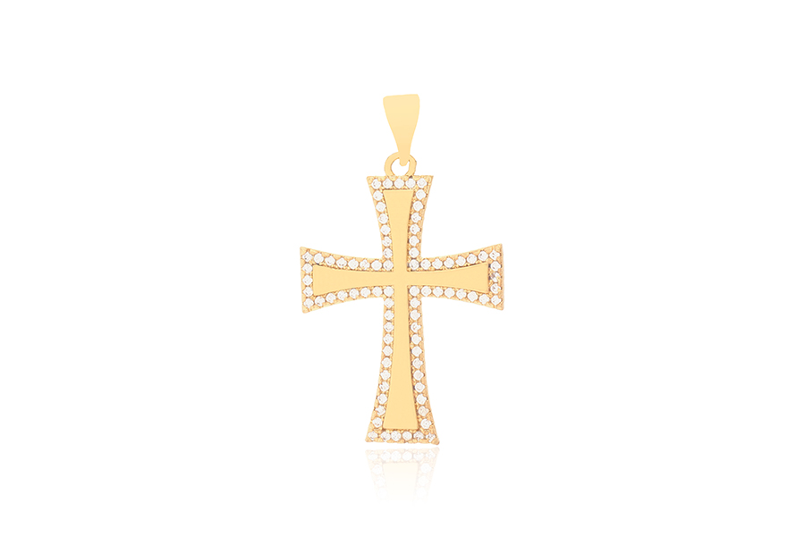PINGENTE BANHADO EM OURO, 15mm DE DIÂMETRO, CRUZ