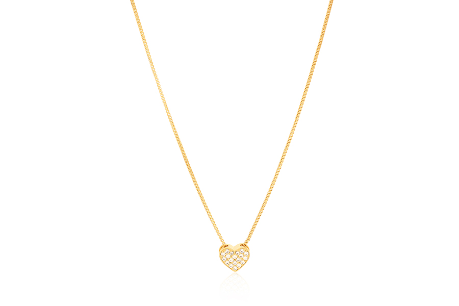 CHOKER EM PRATA, CORAÇÃO 4,60mm ALTURA, COM 1 ZIRCÔNIA CENTRAL, ELO CADEADO, 35+5cm COMPRIMENTO