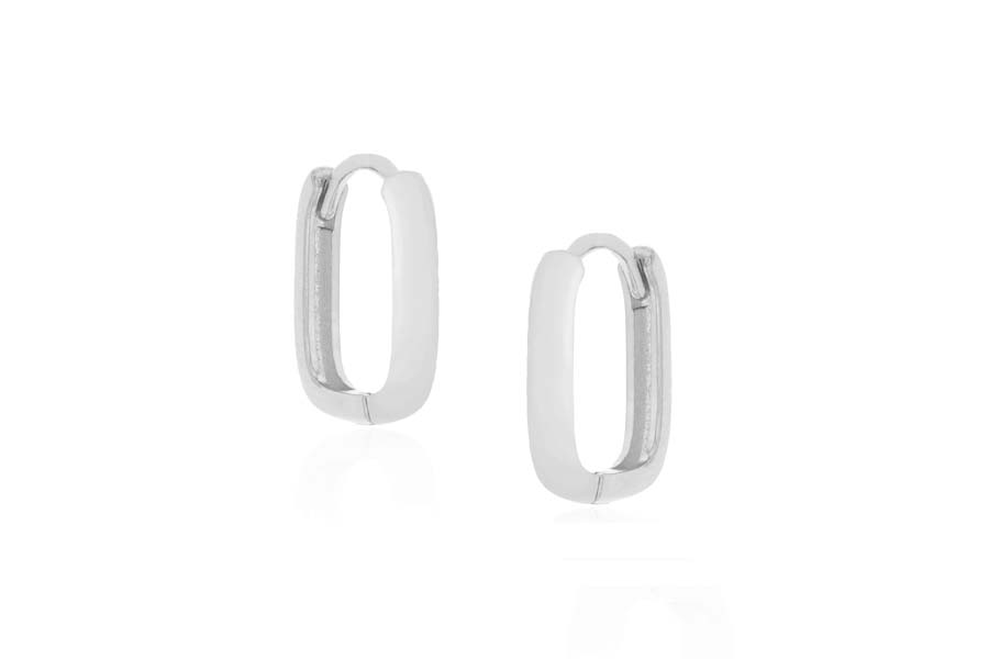 BRINCO BANHADO EM PRATA LEVE, ARGOLINHA RETANGULAR 11x8mm