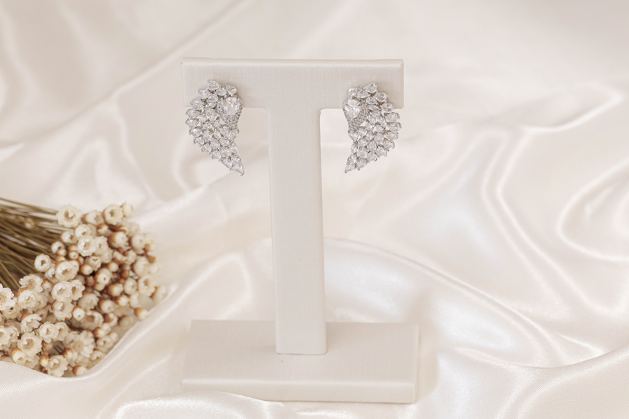BRINCO BANHADO EM RÓDIO BRANCO, PONTO DE LUZ 3mm, CRAVAÇÃO INGLESA