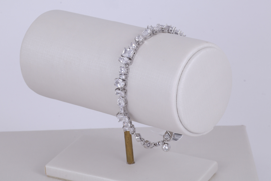 PULSEIRA BANHADA EM RÓDIO BRANCO, 4 FIOS, ELO OVAL 0,90mm, 16cm COMPRIMENTO, EXTENSOR 5cm COMPRIMENTO E PONTO DE LUZ 4mm