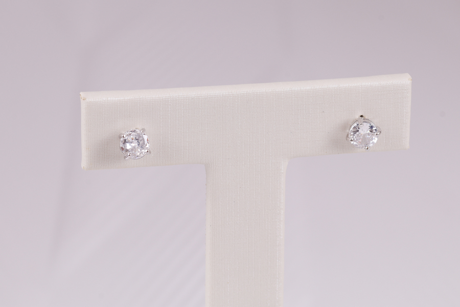 BRINCO BANHADO EM RÓDIO BRANCO, PONTO DE LUZ 3mm, CRAVAÇÃO INGLESA