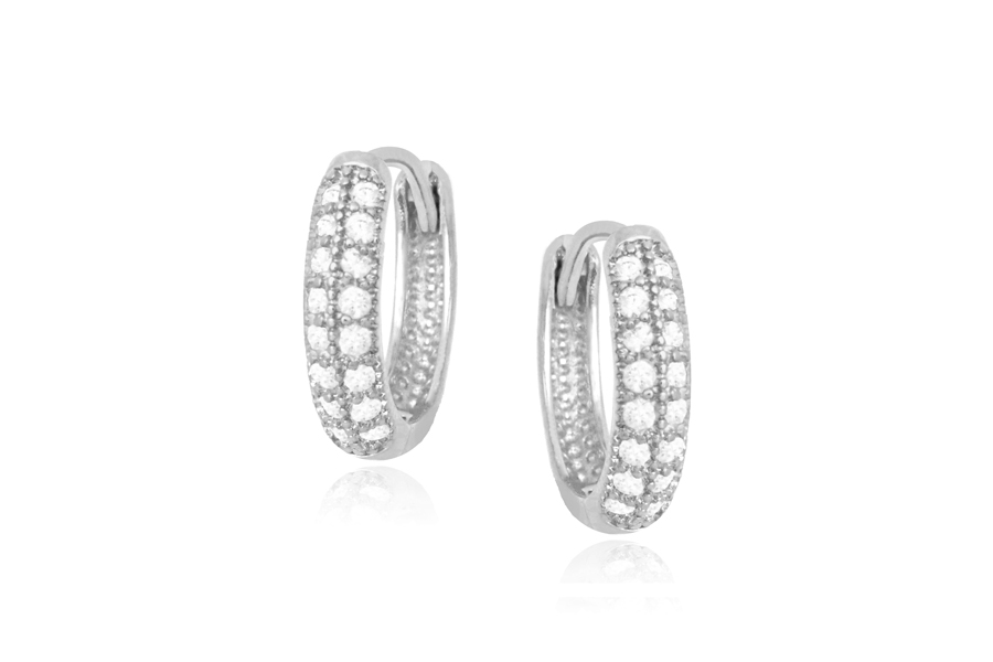 BRINCO BANHADO EM RÓDIO BRANCO, 7mm DIÂMETRO COM 14 ZIRCÔNIAS
