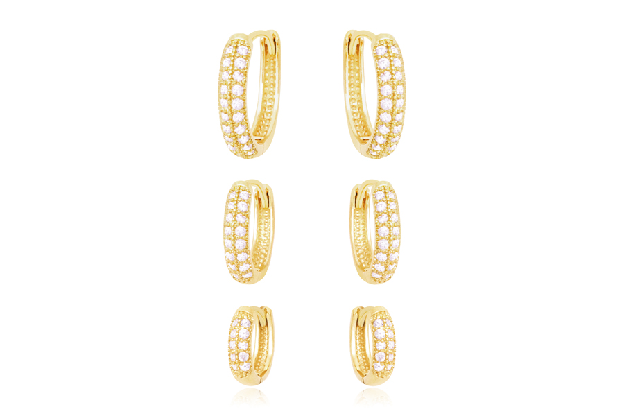 BRINCO EM PRATA, ARGOLINHA 3 FILEIRAS DE ZIRCÔNIAS, 4,80mm LARGURA E 15mm DIÂMETRO