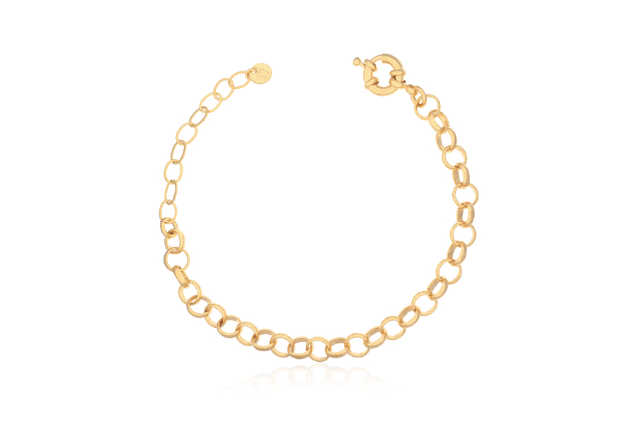 PULSEIRA BANHADA EM OURO, CORRENTE ELO PORTUGUÊS 2,50mm, 17cm COMPRIMENTO, EXTENSOR 5cm COMPRIMENTO E PESO 2,20g