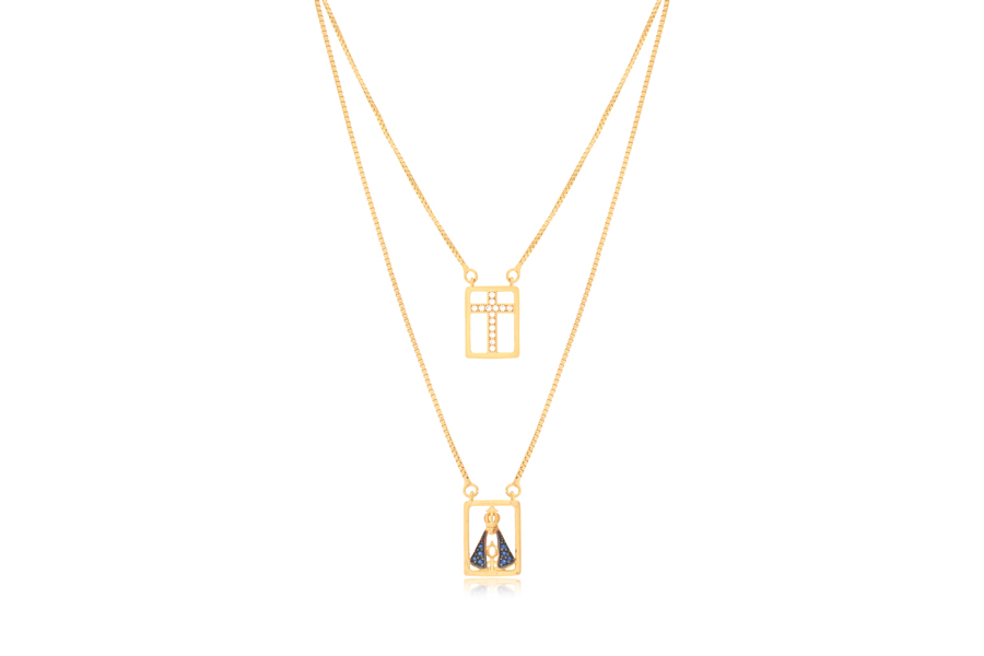 GARGANTILHA BANHADA EM OURO, ESCAPULÁRIO SIMPLES, APARECIDA, VENEZIANA 0,80mm, LINHA TRADICIONAL