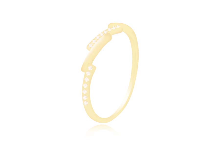 ANEL BANHADO EM OURO, APARADOR UNITÁRIO 3,80mm LARGURA, COM 2 FILEIRAS DE ZIRCÔNIAS