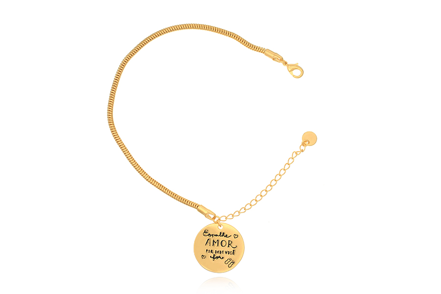 PULSEIRA BANHADO EM OURO INFANTIL ELO PORTUGUÊS 2mm 12cm COMPRIMENTO E CORAÇÃO LOVE 750mm LARGURA