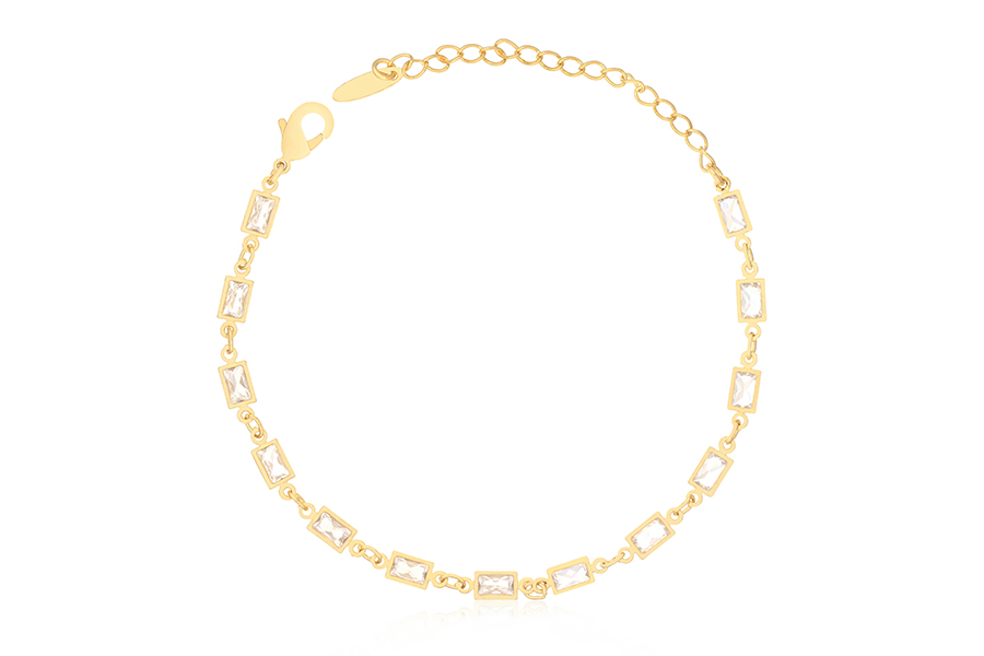 PULSEIRA BANHADA EM OURO, ELO PORTUGUÊS 5mm, 18cm COMPRIMENTO E CORAÇÃO 12mm LARGURA COM ZIRCÔNIAS COLORIDAS