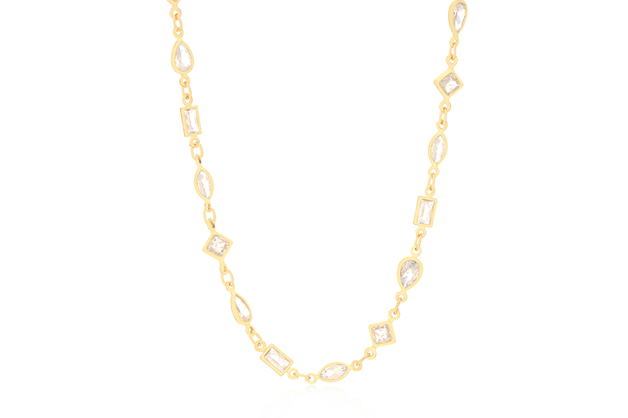 GARGANTILHA BANHADA EM OURO, ELO 3mm, 40cm COMPRIMENTO COM ZIRCÔNIAS QUADRADA E GOTA COLORIDAS