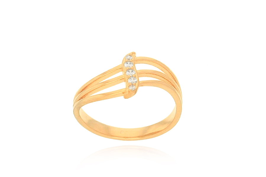 ANEL BANHADO EM OURO, 3 FILEIRAS DE ZIRCÔNIA, 5mm LARGURA
