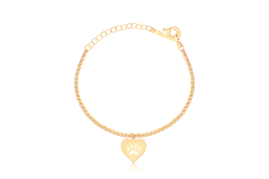 PULSEIRA BANHADO EM OURO INFANTIL ELO PORTUGUÊS 2mm 12cm COMPRIMENTO E CORAÇÃO LOVE 750mm LARGURA