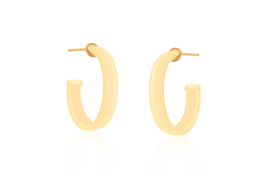 BRINCO BANHADO EM OURO, ARGOLA RETANGULAR 30mm ALTURA E 4,50mm LARGURA, ACETINADO OU LISO