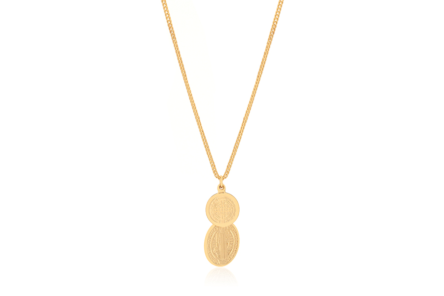 GARGANTILHA BANHADA EM OURO, ESCAPULÁRIO, DIVINO ESPÍRITO SANTO, REDONDO 12mm, ELO OVAL 1,60mm, 70cm COMPRIMENTO